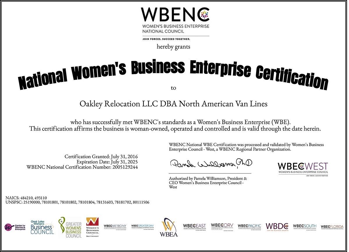 We are pleased to announce that Oakley Relocation LLC was re-certified for 2024 by Women’s Business Enterprise National Council (WBENC) as a women-owned business (WBE) and women-owned small business (WOSB). We are proud to be part of WBENC, the largest certifier of women-owned businesses in the United States and a leading advocate for women business owners and entrepreneurs. About Oakley Relocation Oakley Relocation is a full-service relocation company based in San …